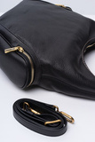 Натуральная зернистая кожа, фурнитура винтажного оттенка"античное золото" и авангардная форма создают стильную комбинацию, которая впишется в любой гардероб. Дополняет дизайн фирменная дымчатая прострочка. Хобо идеально ложится на плечо, а при желании его можно носить кросс-боди - длинный регулируемый ремешок в комплекте.