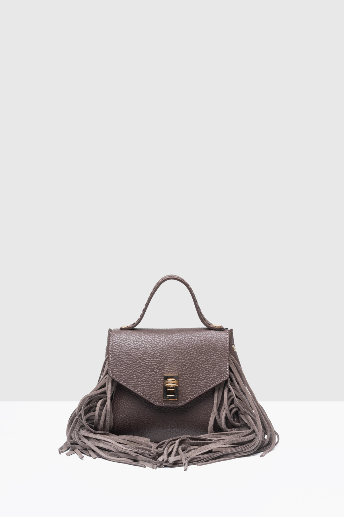 Сумка, которая останавливает на себе взгляды… Игривая замшевая бахрома повторяет каждое движение, создавая завораживающую динамику. Силуэт выполнен из натуральной мягкой кожи глубокого шоколадного оттенка, застежка на клапан с поворотным замочком.