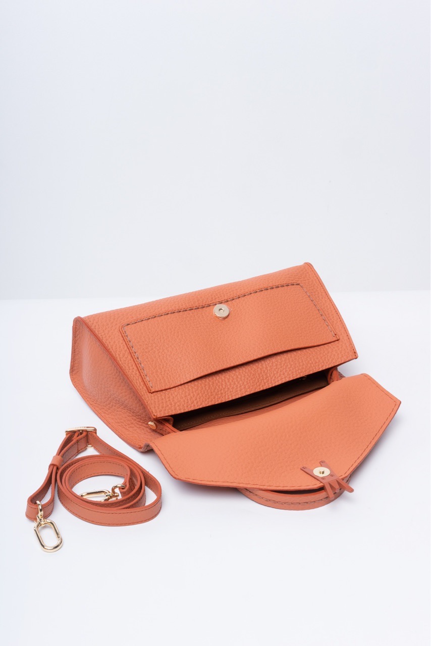 Нежный коралловый оттенок - это цвет, который природа оставляет на лепестках увядающих маков, в последнем луче солнца перед сумерками. Именно в нем особенно эффектно раскрывается живой рельеф фактурной плотной и в то же время мягкой натуральной кожи. Четкость линейных форм подчеркнута деликатной прострочкой по силуэту и граничным логотипом в центре. Под клапаном на магнитной кнопке кармашек и вместительное внутренне пространство, которое вмещает планшет, бутылочку воды, документы и все важные мелочи. На обратной стороне имеется дополнительный кармашек на молнии.