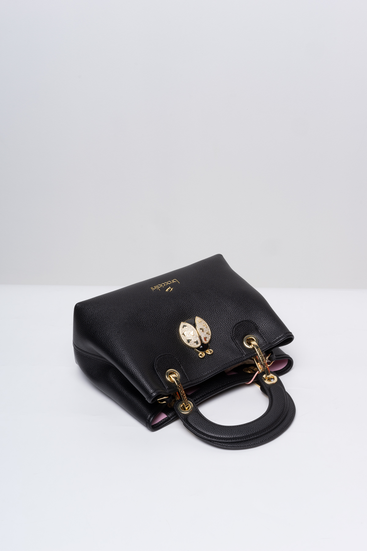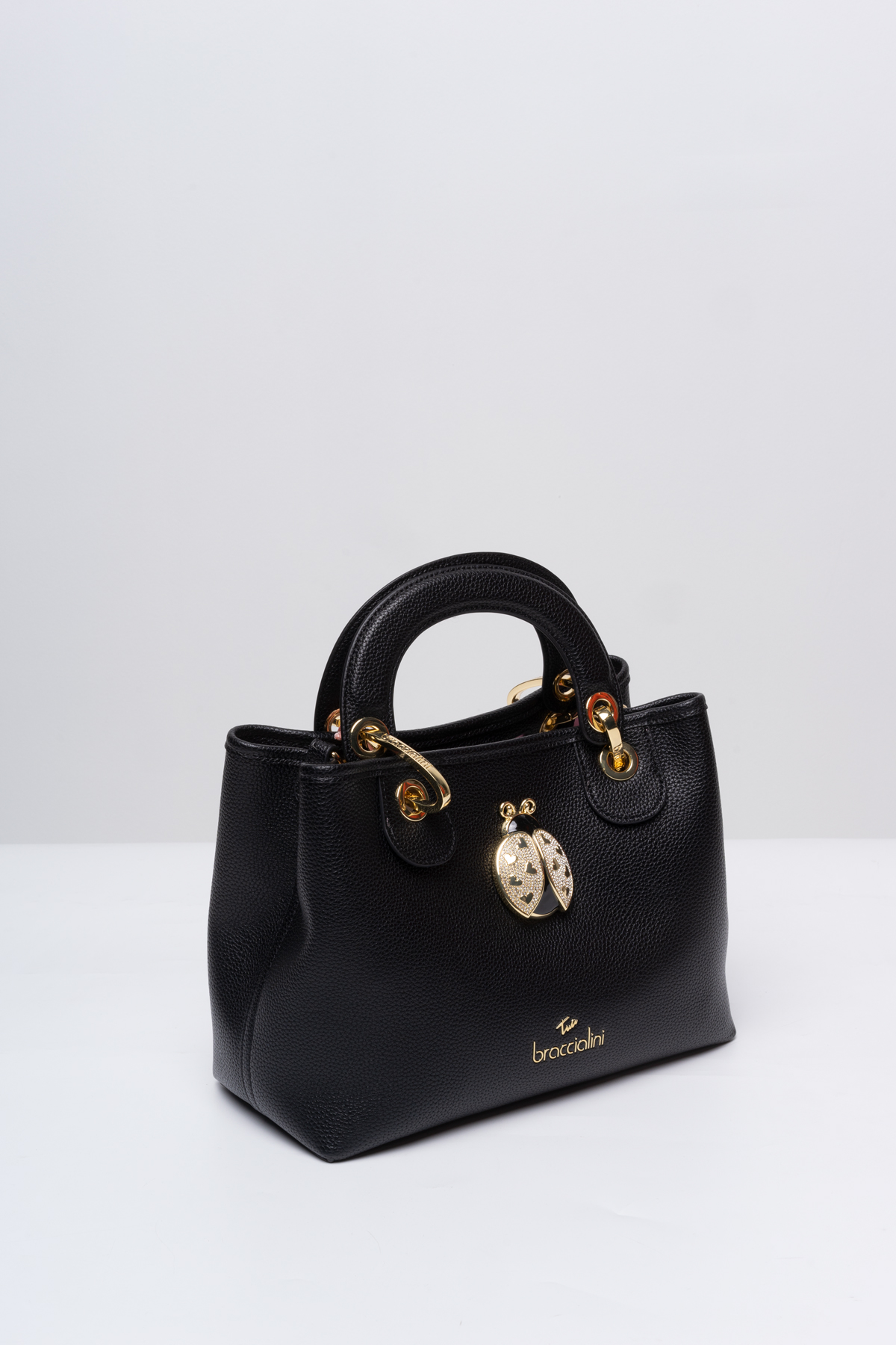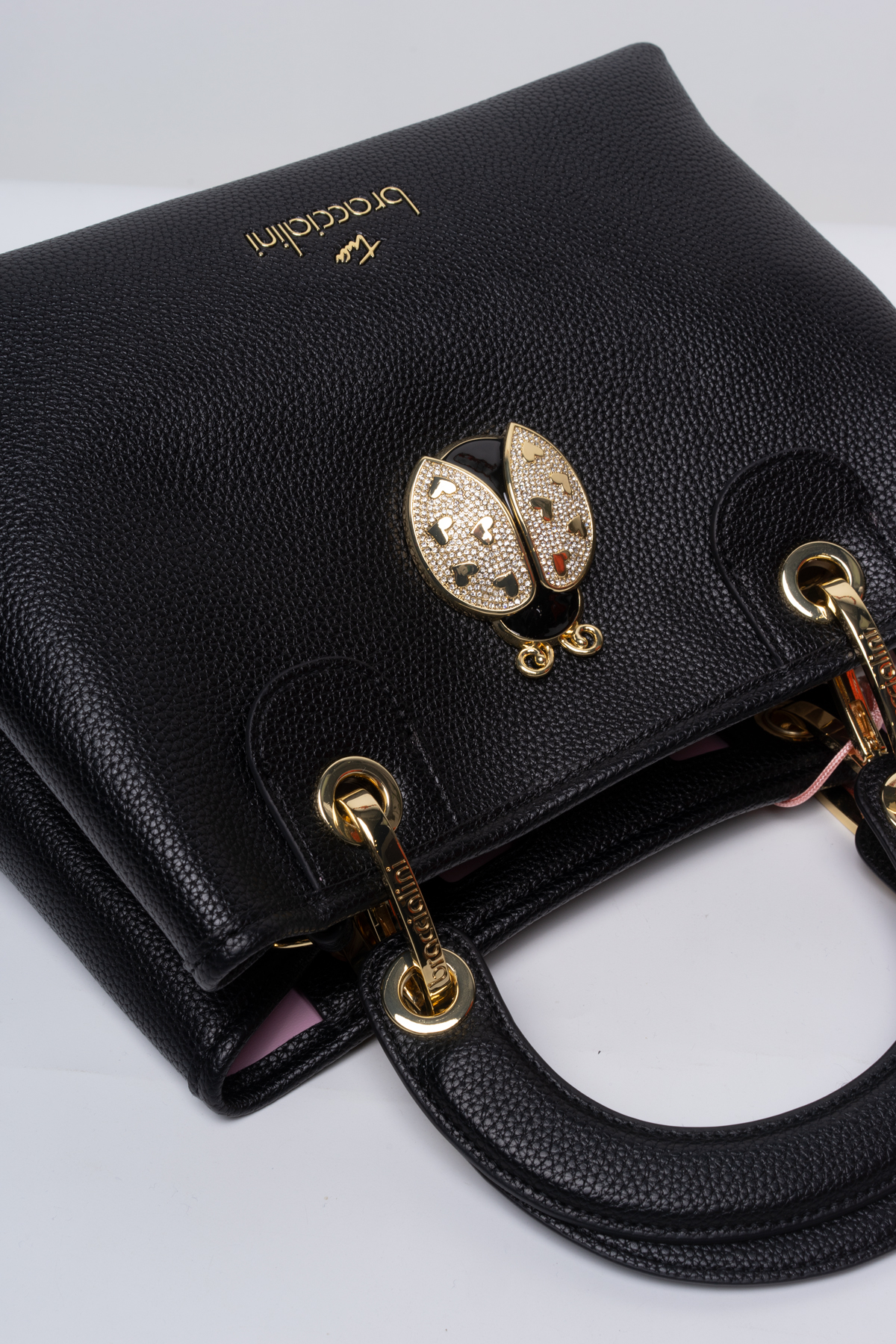 Маленькая черная сумочка - маст-хэв в гардеробе каждой девушки. Флорентийский бренд BRACCIALINI предложил оригинальный и креативный взгляд на классику, поместив в центр очаровательную божью коровку - символ удачи в итальянской культуре. Элегантный золотой акцент находит себя в металлических деталях и внутреннем съемном вкладыше, который можно использовать для организации содержимого или как самостоятельный аксессуар.