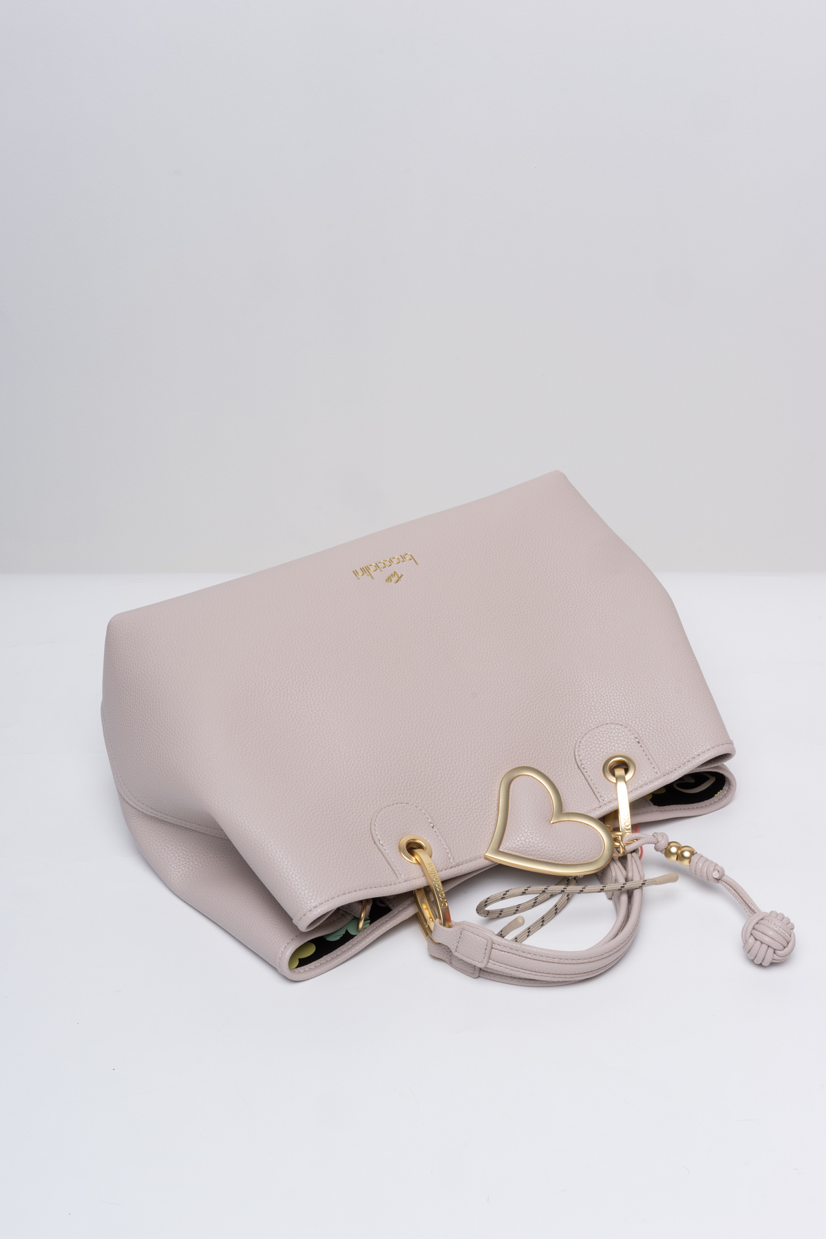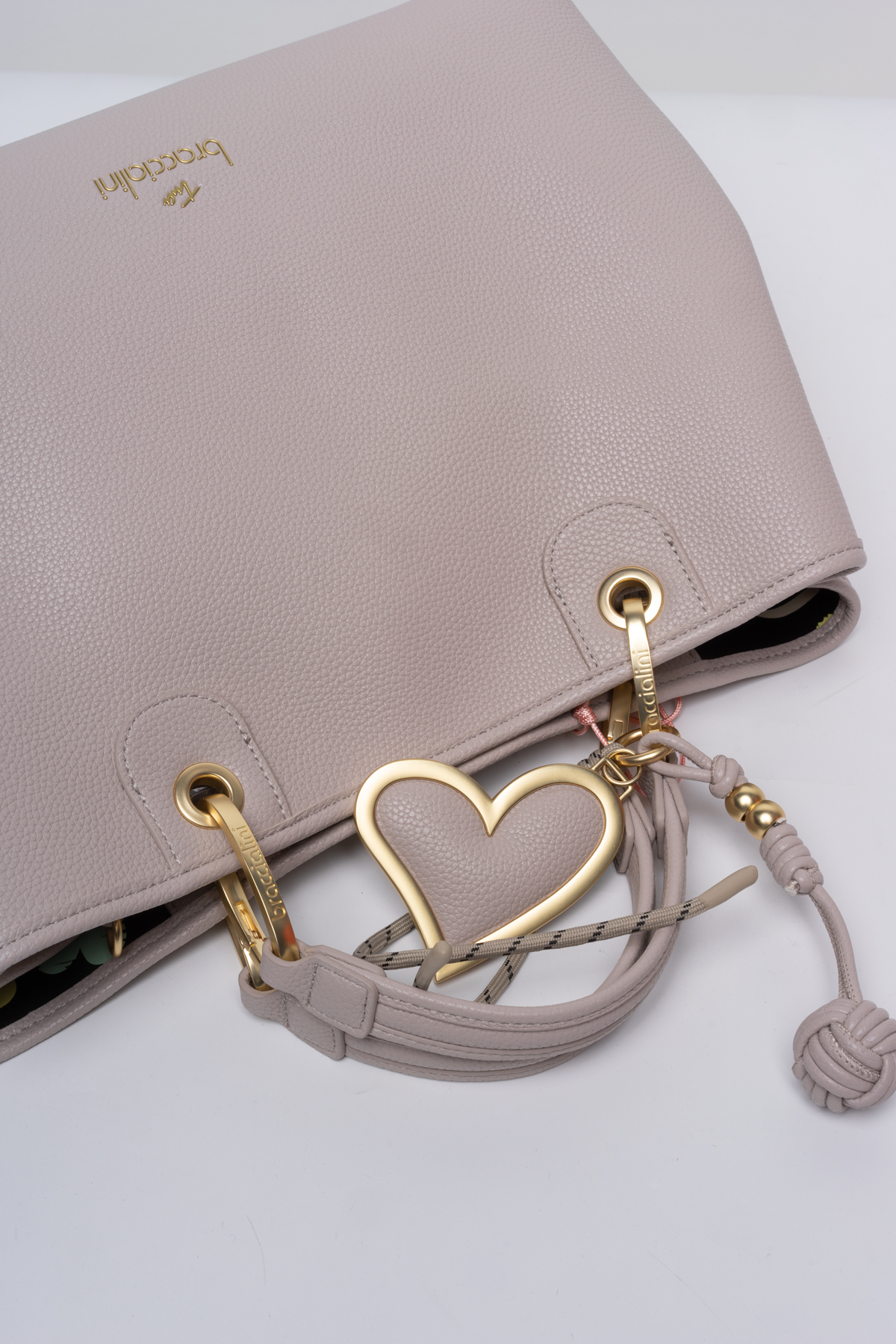 Большой шоппер жемчужно-серого цвета из высокотехнологичной экокожи- безупречная база современного гардероба. Благородный оттенок сумки в сочетании в матовой светло-золотой фурнитурой подчеркивает сдержанную элегантность модели и легко адаптируется к любым образам - от деловых до повседневных.
