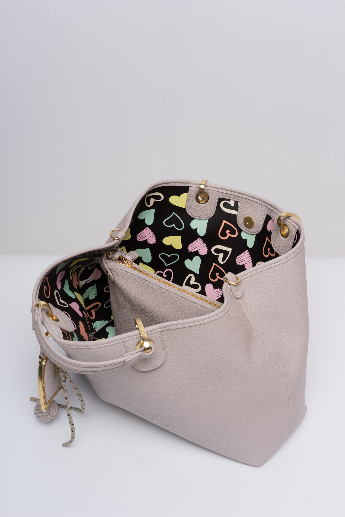 Внутреннее пространство дополнено съемным вкладышем-органайзером для телефона, косметики и важных мелочей - практичный аксессуар, который можно использовать и с другими сумками. Романтичная подкладка внутри каждый раз создает приятное настроение. Застежка на магнитную кнопку и стильный брелок в комплекте завершают изысканный образ.