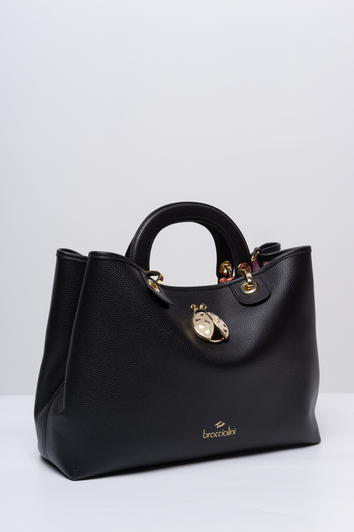 Элегантный объемный шоппер из технологичной экокожи - идеальный формат на каждый день. Классическая модель обретает особое звучание благодаря изящной детали - золотой божьей коровке, которая, по поверьям итальянцев, непременно принесет удачу ее обладательнице.