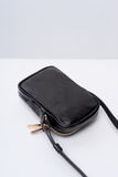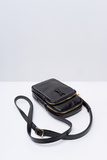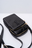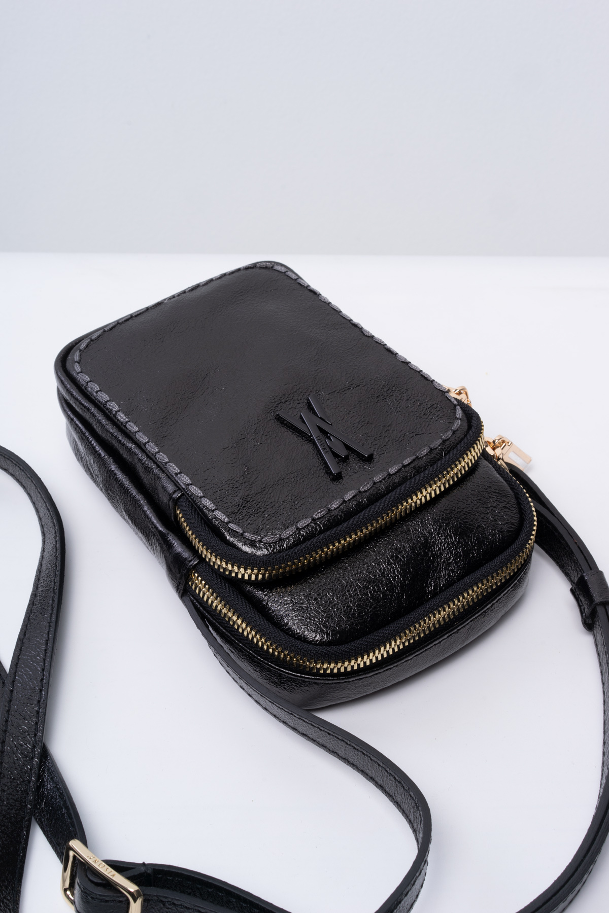 Миниатюрная черная сумочка VISONA' - это эффектное сияние лакированной телячей кожи, контрастная фурнитура "светлое золото" и компактная форма, которая вместит в себя все самое важное - телефон, документы, ключи. Лаконичный логотип тон в тон - фирменный почерк бренда.