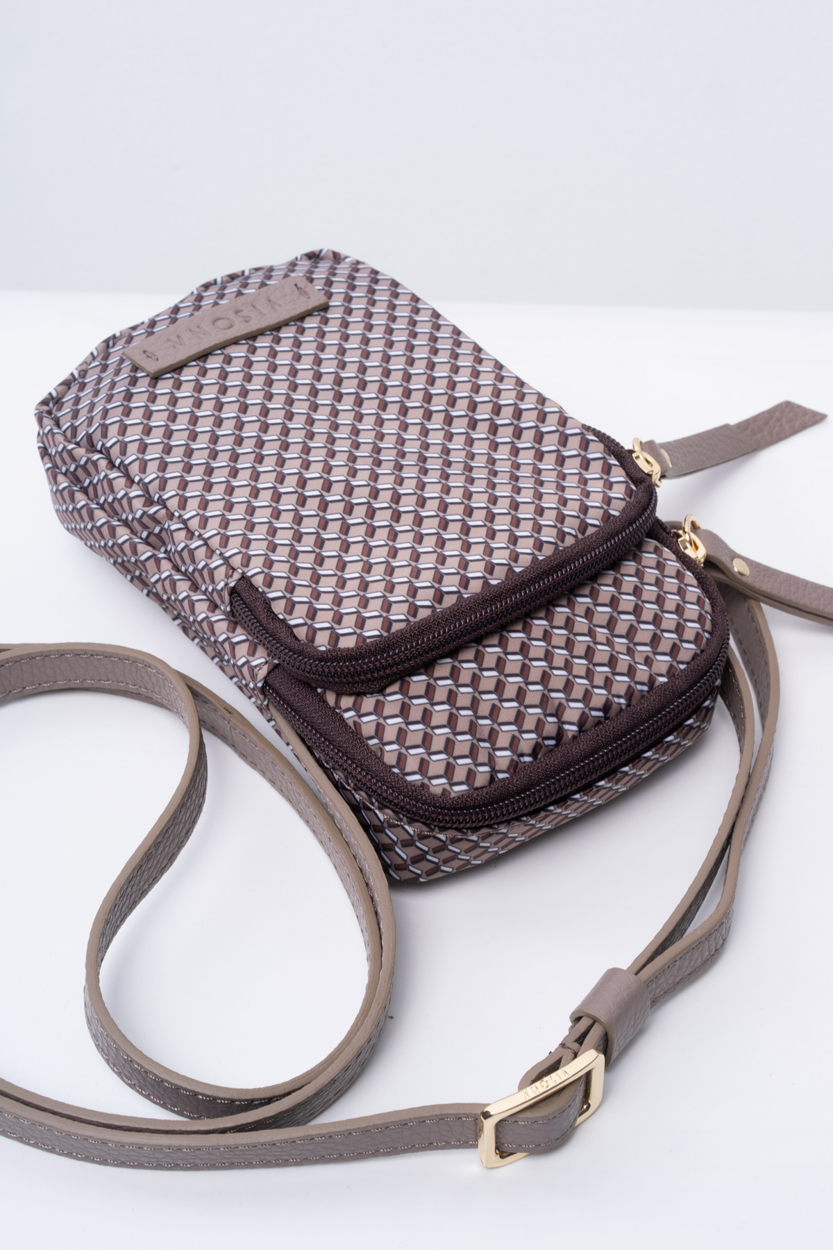 Современное сочетание технологичного нейлона и натуральной зернистой кожи, светло-золотая фурнитура и компактная форма, которая вместит в себя все самое необходимое - телефон, документы, ключи, блеск для губ. Лаконичный логотип в тиснении - фирменный почерк VISONA'.