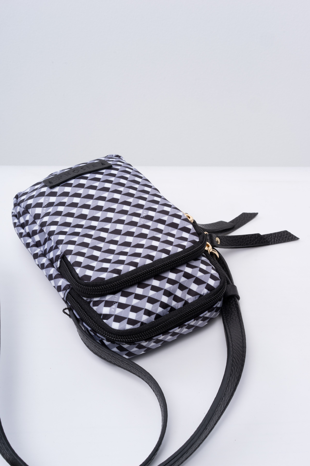 Современное сочетание технологичного нейлона и натуральной зернистой кожи, светло-золотая фурнитура и компактная форма, которая вместит в себя все самое важное - телефон, документы, ключи. Лаконичный логотип в тиснении - фирменный почерк VISONA'.