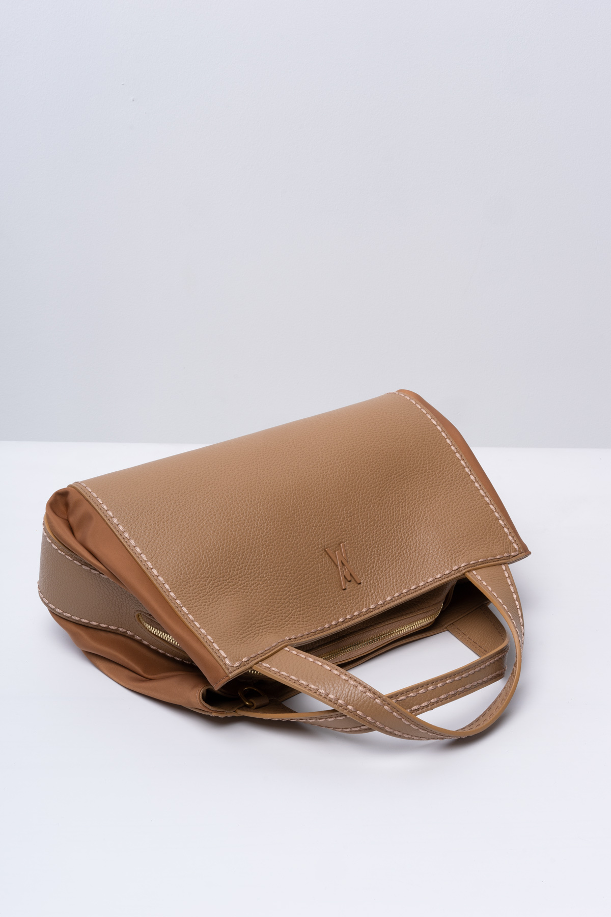Мягкий тоут VISONA' согревающего цвета горячей карамели - идеальный аксессуар на сезон холодов. Модель сочетает в себе компактность формы и в то же время безупречную вместительность: в вашем распоряжении основное отделение под молнией и три кармашка внутри, а также два просторных боковых отсека. Натуральная зернистая кожа, вставки из технологичного нейлона бо бокам, благородная фурнитура цвета "античное золото", лаконичное лого и традиционная деталь бренда - дымчатая строчка. Длинный регулируемый ремешок в комплекте.