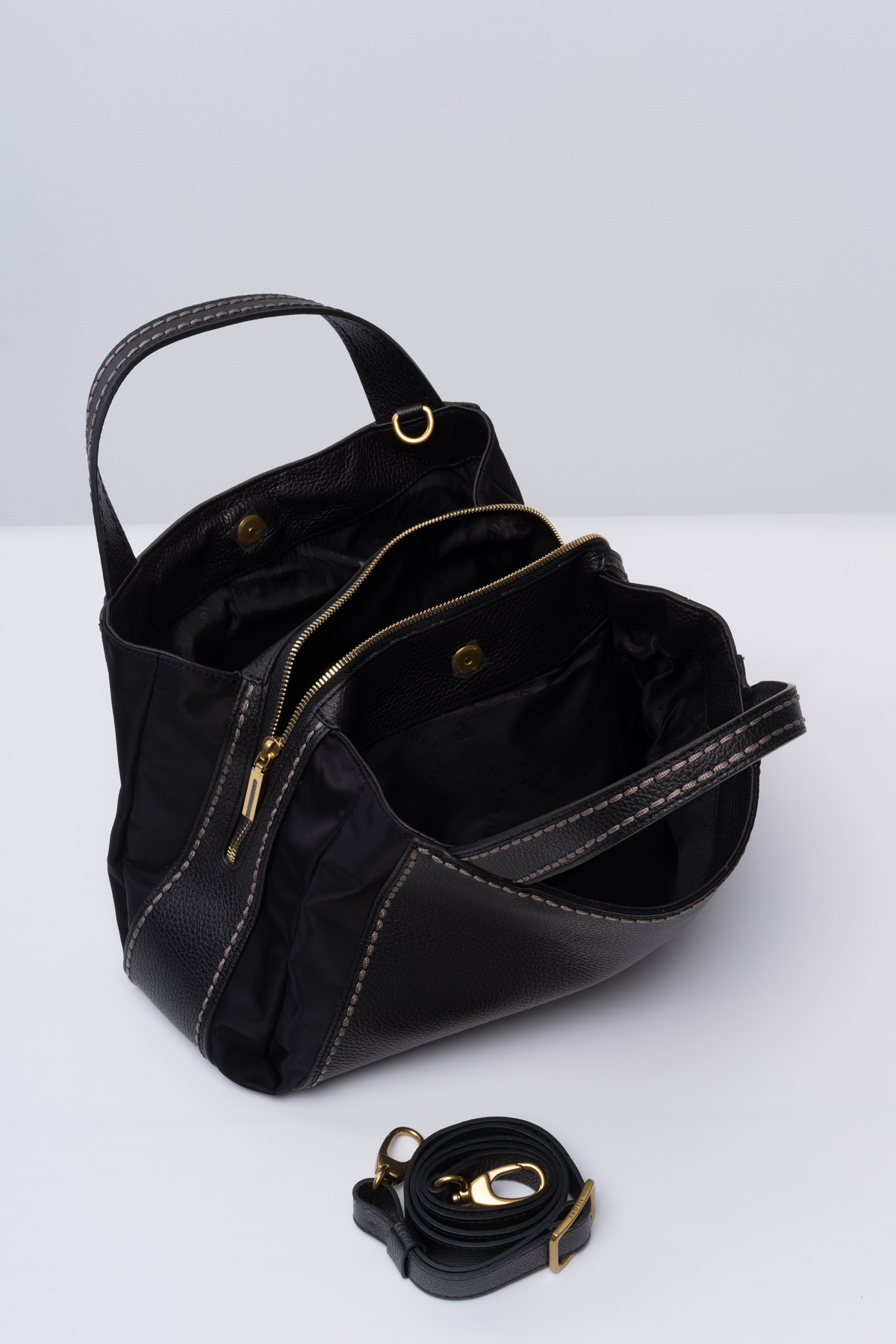 Мягкий черный тоут VISONA' - элегантная классика и беспроигрышный вариант как для нарядного выхода, так и для повседневной городской жизни.